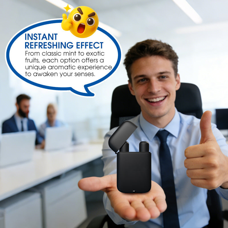 DUBBELE SPUITMOND - Adem gelijktijdig in door beide neusgaten voor een evenwichtige en krachtige golf van verfrissing. Dit ontwerp maximaliseert het verkoelende gevoel, waardoor je hoofd en zintuigen direct helder worden voor een betere focus en helderheid.