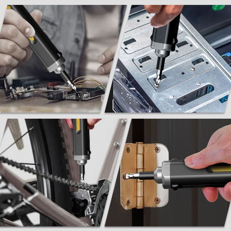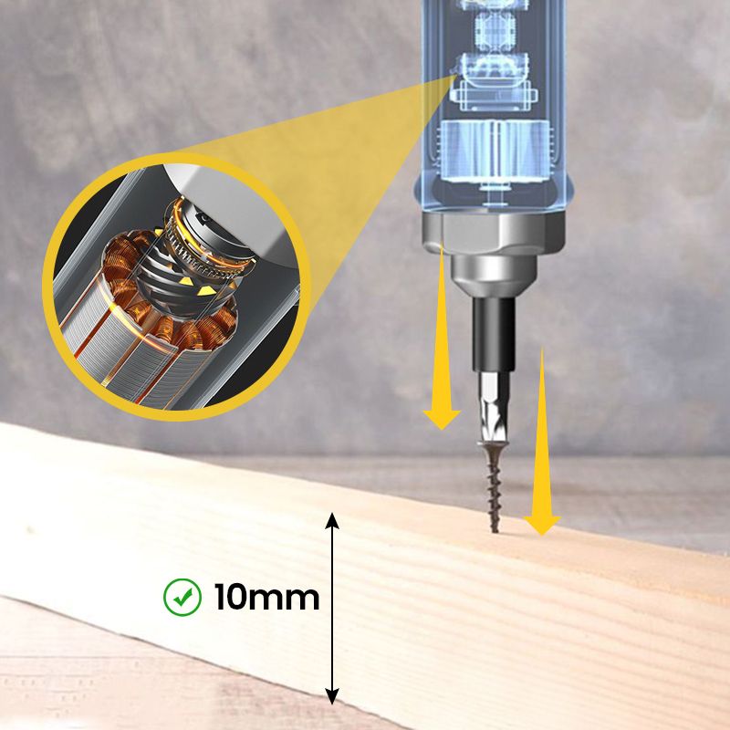KRACHTIG EN EFFICIËNT : Onze multifunctionele mini-elektrische schroevendraaier is uitgerust met een krachtige motor die uitzonderlijke kracht en snelheid levert. Hij pakt moeiteloos schroeven van verschillende formaten en materialen aan, waardoor uw taken snel en efficiënt verlopen. Geen gedoe meer met handmatige schroevendraaiers en geen tijd- en moeiteverspilling.