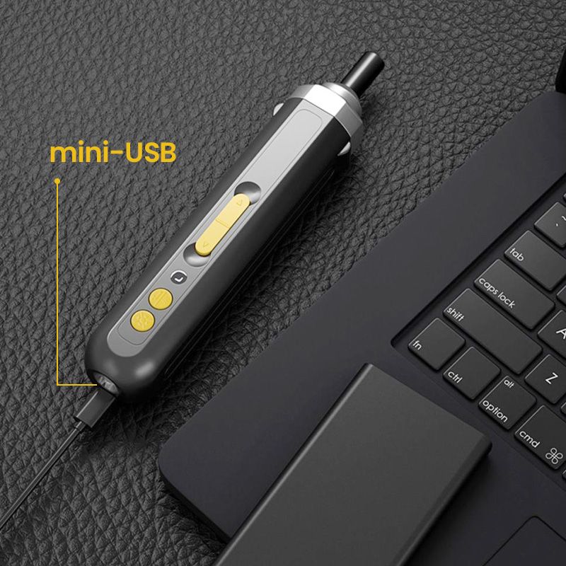 OPLAADBAAR EN DRAADLOOS : Zeg vaarwel tegen gedoe met snoeren en batterijen. Onze mini-schroevendraaier is oplaadbaar en biedt langdurig vermogen voor al uw klussen. De meegeleverde USB-oplaadkabel zorgt voor eenvoudig en handig opladen, zodat u altijd klaar bent voor uw klussen.