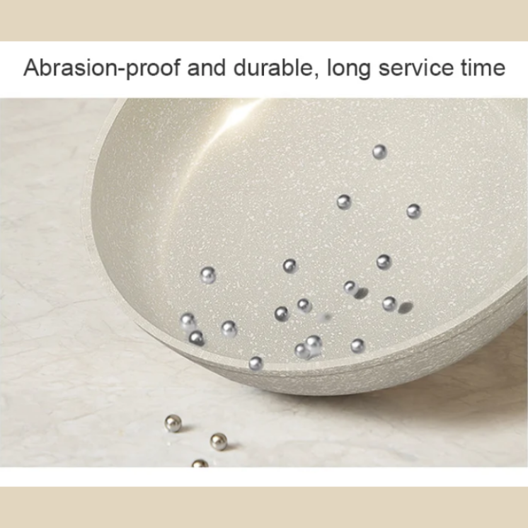 Pierre médicale - cette poêle antiadhésive en pierre médicale est faite de Pierre médicale et est très durable. Le matériau est également résistant à la chaleur et aux rayures, vous pouvez donc être sûr qu’il durera longtemps dans votre cuisine.