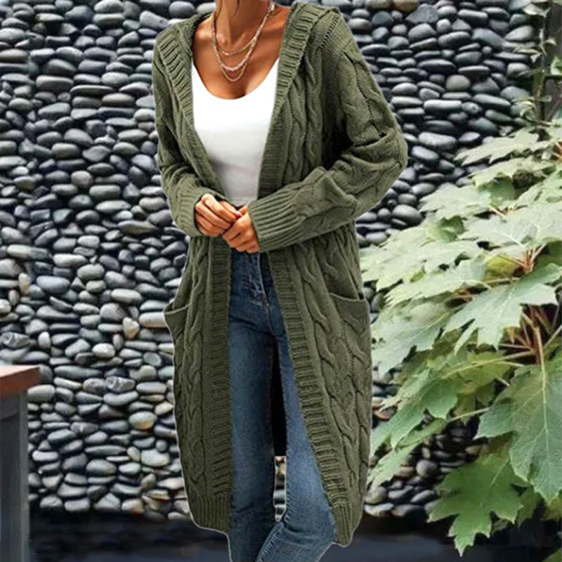 Verrijk je garderobe met onze lange gebreide damesvestjas, een veelzijdige en chique toevoeging die je modegevoel het hele jaar door moeiteloos aanvult. Of je nu laagjes draagt voor de koudere maanden of een stijlvolle touch toevoegt aan je lente- en herfstoutfits, deze vestjas is dé keuze voor comfort, warmte en een tijdloze stijl.